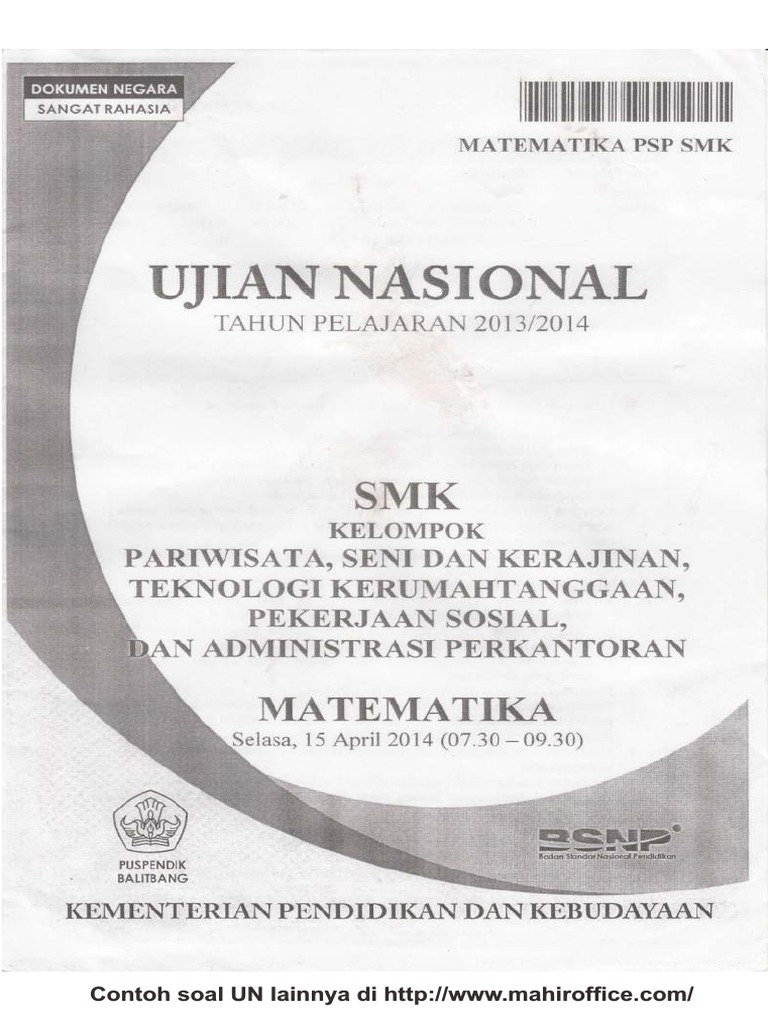 Contoh Soal UN Matematika SMK Kelompok Pariwisata, Seni ...