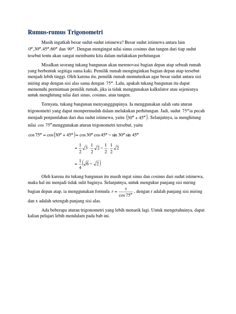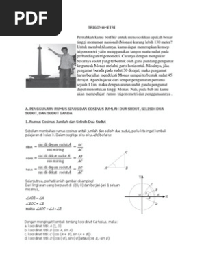 Demikian penjelasan yang bisa kami sampaikan tentang Materi Lengkap Trigonometri Dengan Fungsi , Rumus Dan Pembahasan Contoh Soal.