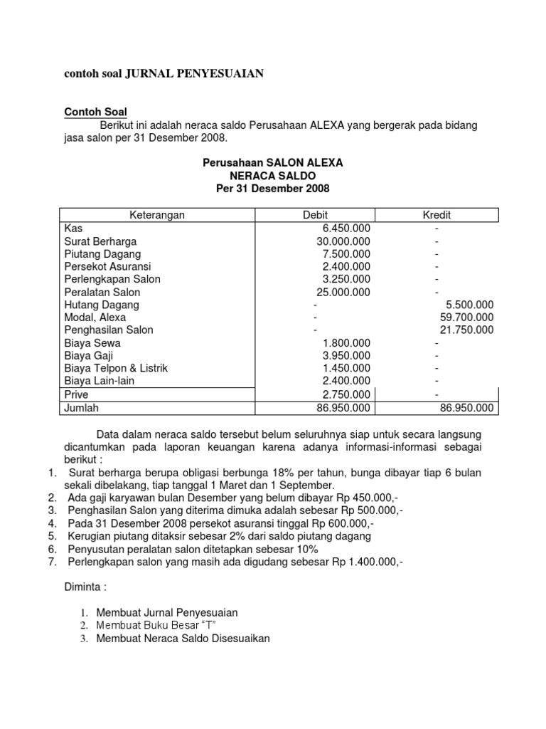Pengertian dan Contoh Soal Jurnal Penyesuaian Lengkap Dengan Jawabannya.